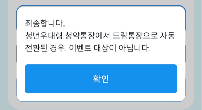 (다만, 기존 청년우대형통장에서 자동전환되었을 경우엔 이벤트 참여 대상자는 아니게 됩니다.)