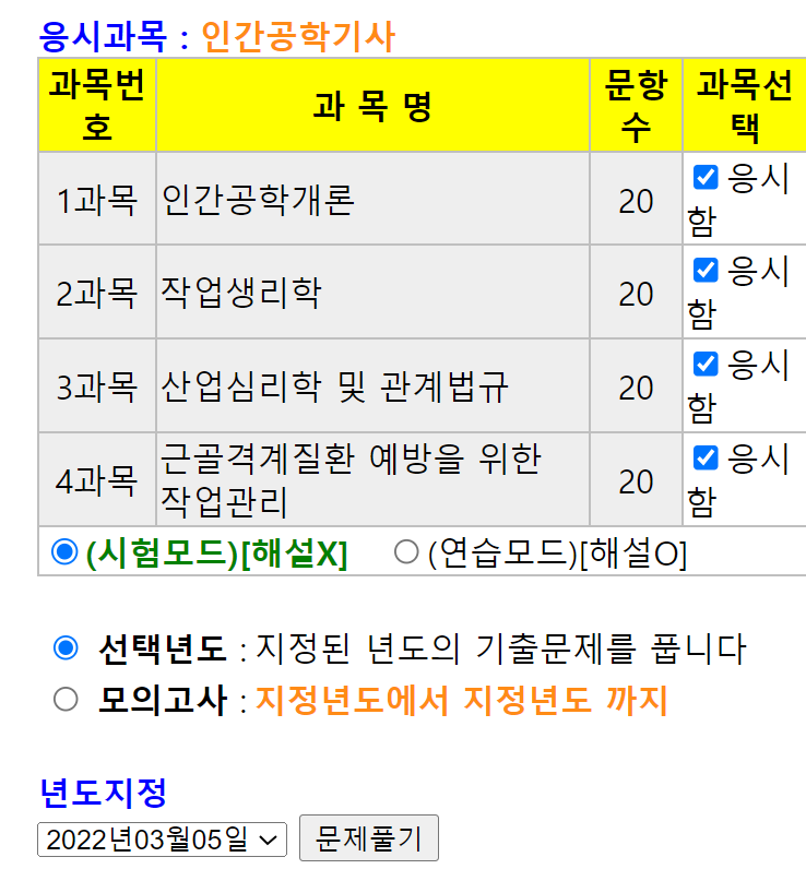 시험과목 - 인간공학기사 선택하실 수 있습니다.