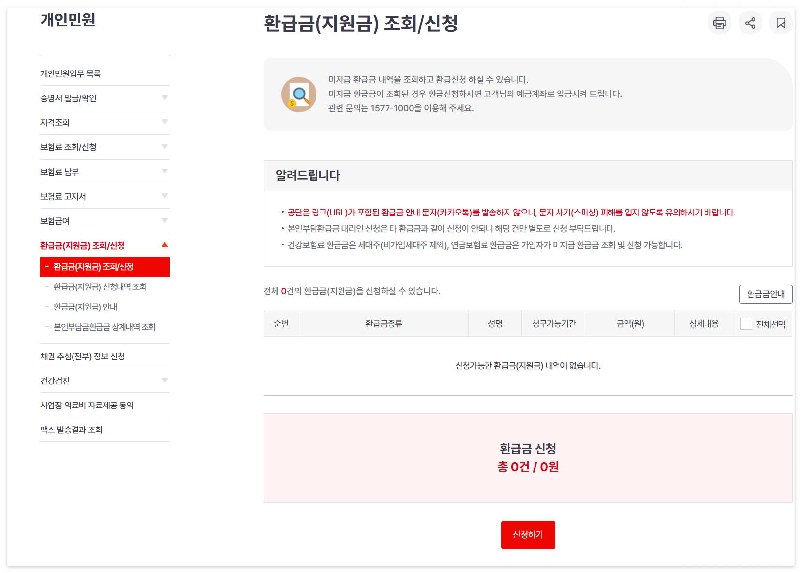 | 건강보험 본인부담 환급금 조회/신청방법 |