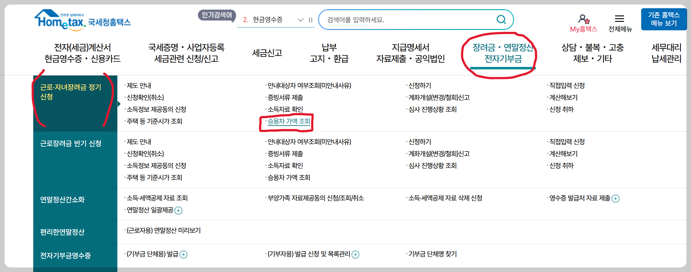 상위메뉴 - 장려금,연말정산,전자기부금 - 승용차 가액조회
