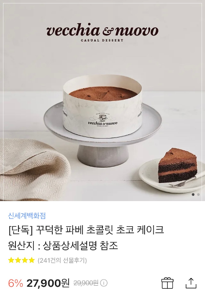 신세계백화점 꾸덕한 파베초콜릿케이크