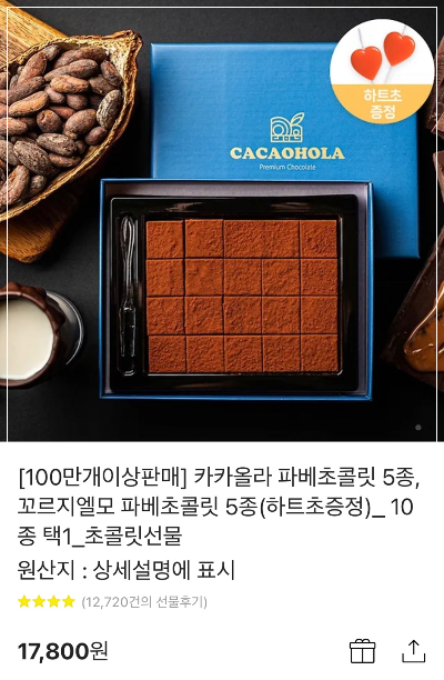 골라먹는 재미가 있는 수제 초콜릿 세트입니다. 메세지와 함께 전달하면 더 센스있는 선물이 가능할 것 같아요!